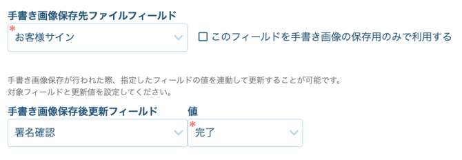 手書き画像保存後、指定したフィールドの値を連動して更新することが可能に
