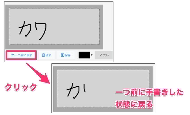 これまでは手書きした内容を一つ前の手書きの状態に戻したい場合でも、「消す」を押すと手書きした内容全てが消えてしまっていました。