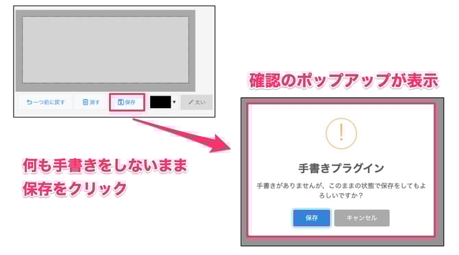 手書きをしていないまま保存する場合に、確認のポップアップが出るように