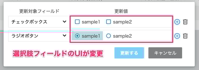 一括更新フィールド選択/設定画面のUIが変更