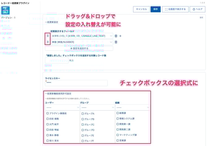 今回のアップデートにより、一括更新の設定でユーザー・組織だけでなく「グループ」が選択できるようになりました。