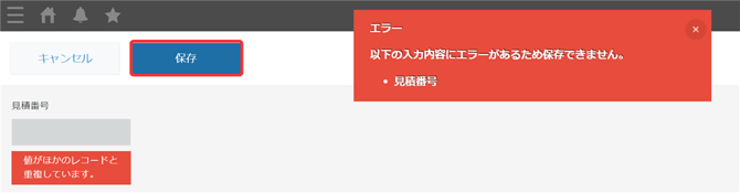 複数人のユーザーが同時に採番を行った場合、後から保存したユーザーの画面に「値がほかのレコードと重複しています。」というエラーが発生します。