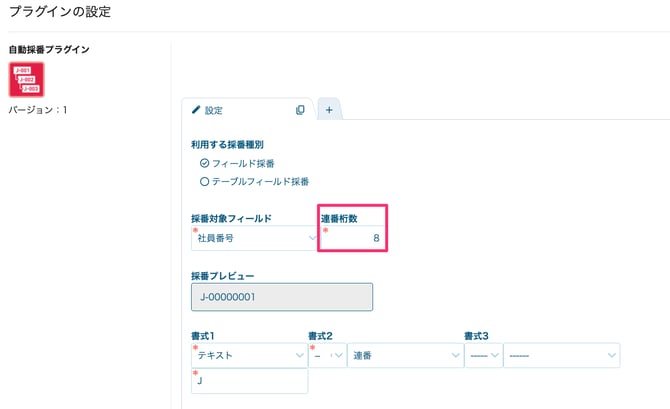 そのためプラグインの設定の連番桁数が、採番値より少なく設定されている場合(例:採番値1000、採番桁数が2になっている場合)は、採番に時間を要する場合がございますので、設定をご確認ください。