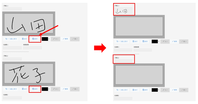 手書き用フィールドが複数ある場合はそれぞれの署名欄に対応した保存ボタンを押してください。